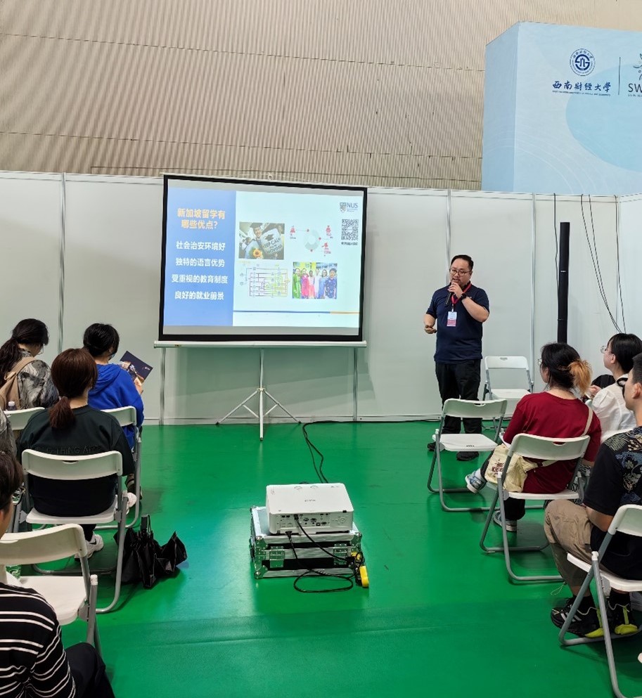 在双选会上,新加坡国立大学工业系统工程与管理系海事技术与管理硕士项目学术主任、下一代港口建模与仿真卓越中心联合主任LI Haobin博士和海事研究中心的Gladys KOH女士为学生现场宣讲了新加坡国立大学的硕士项目,现场反响十分热烈,三百余份项目材料很快就被热情咨询的同学们领取完毕。