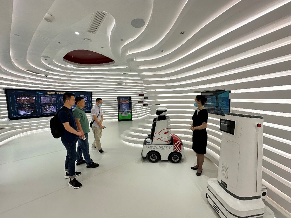 在工作人员的带领下,王宇一行参观了京东西南总部企业文化展厅,了解了京东集团发展历程及最新技术应用成果。