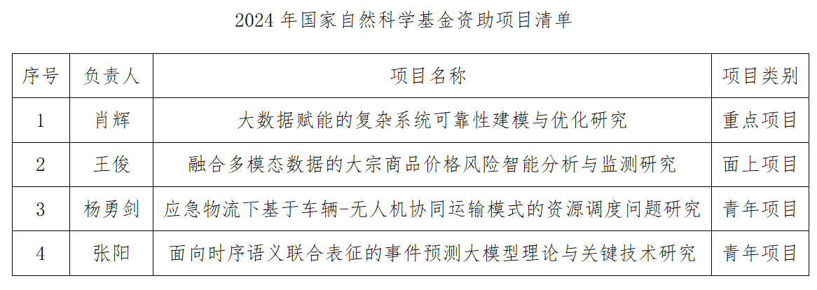 8月23日,国家自然科学基金委公布了2024年度国家自然科学基金集中接收申请项目的评审结果,304永利集团管理科学与工程学院获得4项资助,其中国家自然科学基金重点项目1项、面上项目1项、青年项目2项,立项总经费261万。