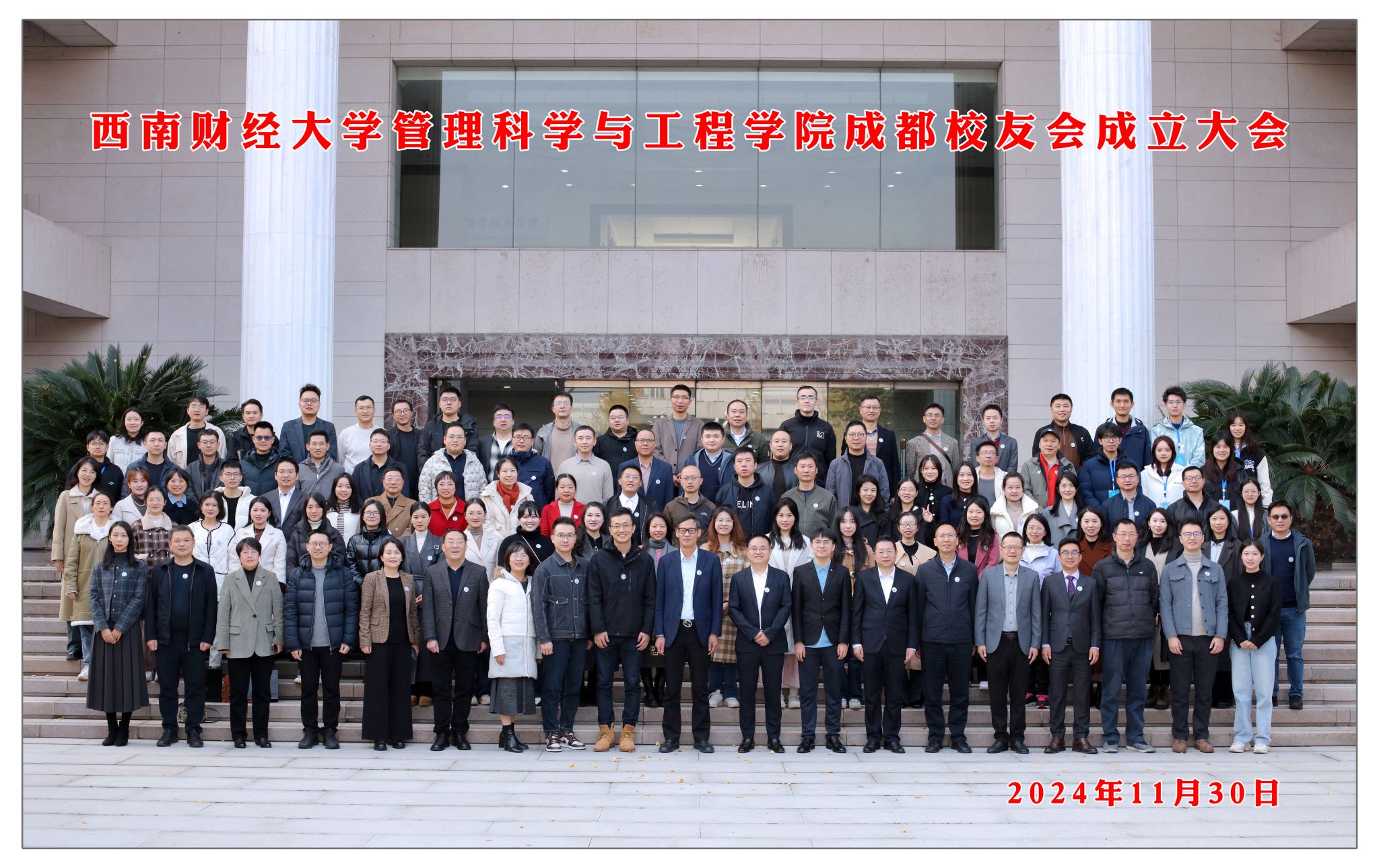 11月30日,304永利集团管理科学与工程学院成都校友会成立大会在光华校区成功举办。学校党委常委、副校长桂富强,校友工作办公室、管理科学与工程学院班子成员及教师代表出席会议,川渝地区校友代表共计80余人参加大会。学院党委副书记、纪委书记袁程炜主持会议。