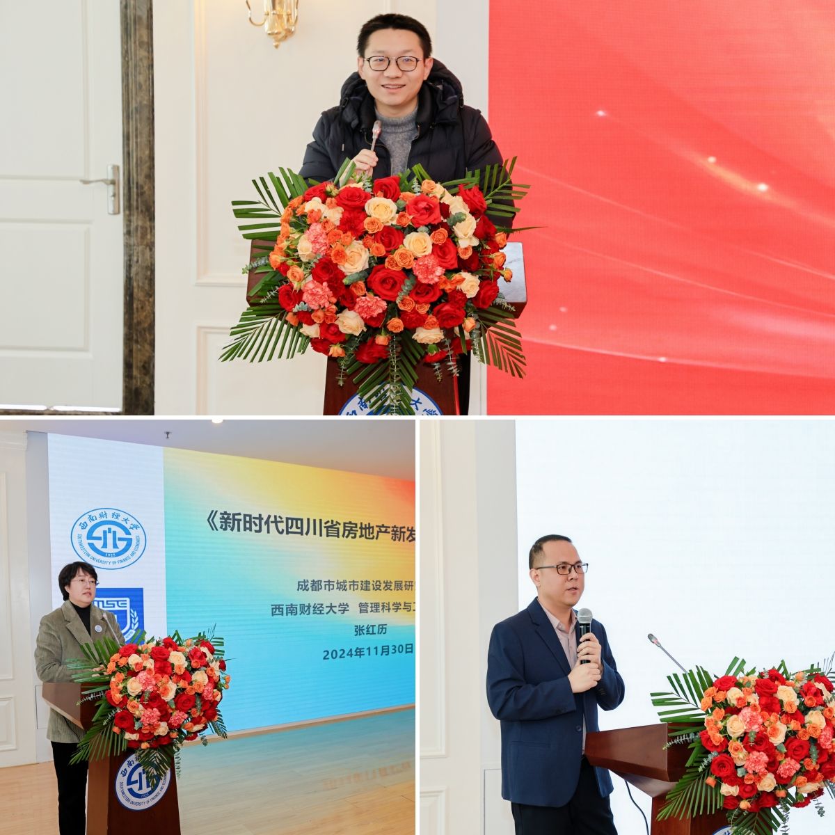 2003级校友施敏担任学院成都校友会首任秘书长并发言。他为母校取得的成就和学院发展的成绩感到自豪。他表示,学院成都校友会不仅是联络校友情感的纽带,更是信息交流的平台和事业发展的助推器,校友会将秉承“服务校友、联络感情、促进合作、共谋发展”的宗旨,凝聚校友情感、传承西财精神、促进合作共赢,为学院发展助力、为母校百年华诞献礼。