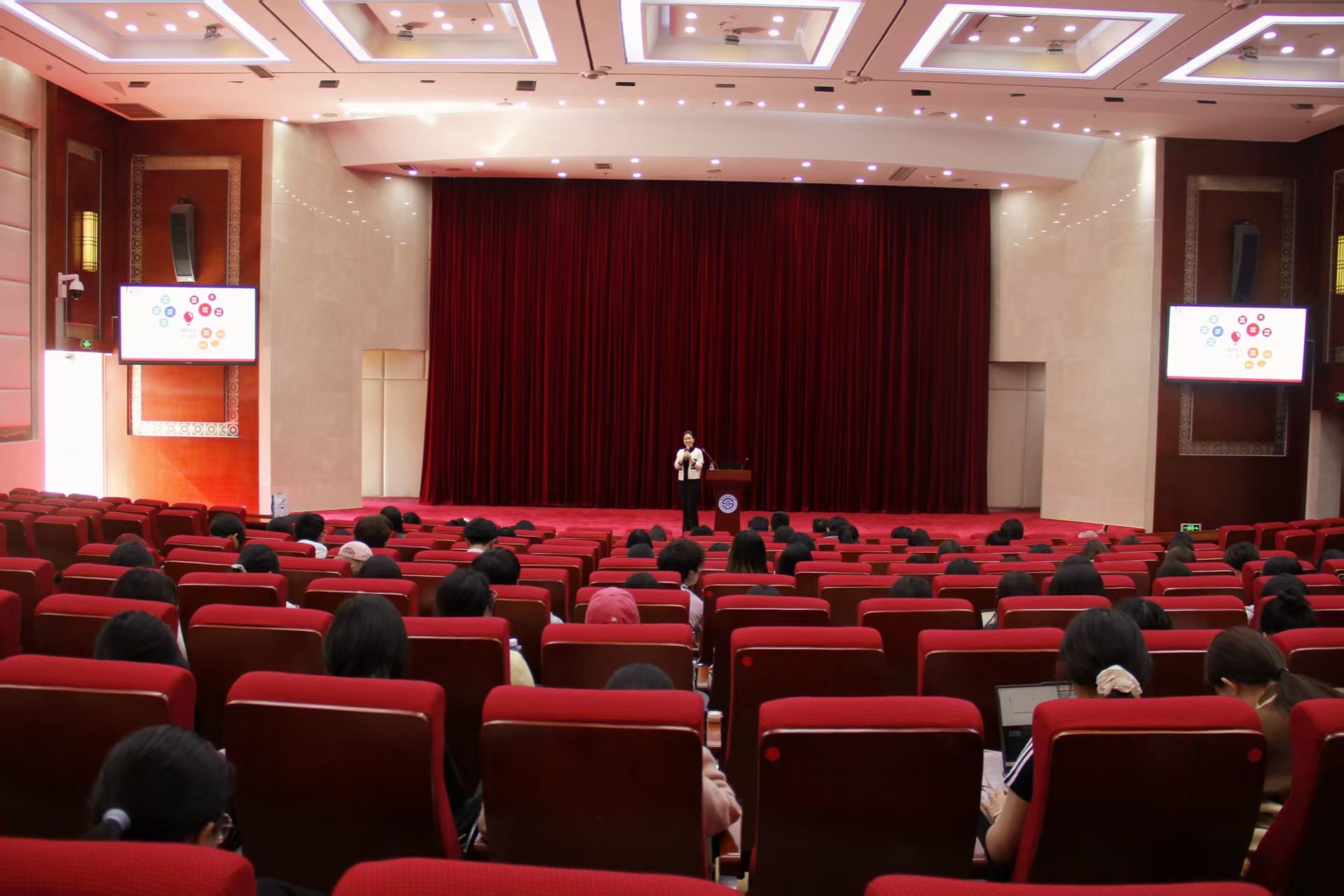 讲座中,刘希校友通过详实的数据分析,深入剖析了当前就业市场"冰火两重天"的发展态势。她提出"危机即机遇"的就业理念,建议同学们主动拥抱变化,通过"内部提升+资源链接"构建核心竞争力。针对学生普遍存在的职业规划困惑,刘希指出:“考研应当是基于职业发展的理性选择,而非逃避就业压力的避风港。”她结合自身持续跨界学习、不断突破舒适区的职业经历,勉励同学们树立终身学习理念,坚信"有实力就是有魅力"