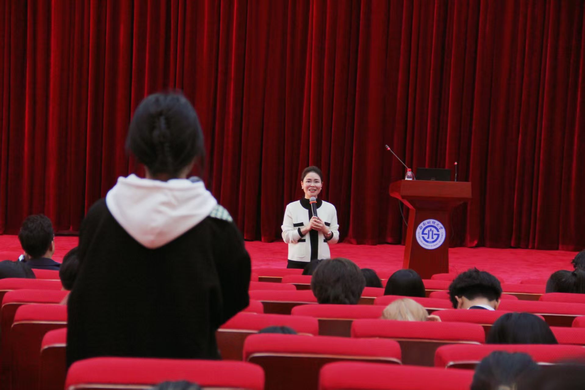 在喜迎百年校庆之际,为贯彻落实教育部就业工作部署,切实提升学生就业竞争力,着力打通求职“最后一公里”,助力学生成功“上岸”。325日下午,学院在弘远楼105会议室成功举办“谁的青春不迷茫——就业突围指南”职业发展专题讲座。摩尔龙集团总经理、成都市企业创新商会副会长、我校优秀校友刘希应邀担任主讲嘉宾,学院党委副书记袁程炜主持活动,200余名学生到场聆听。