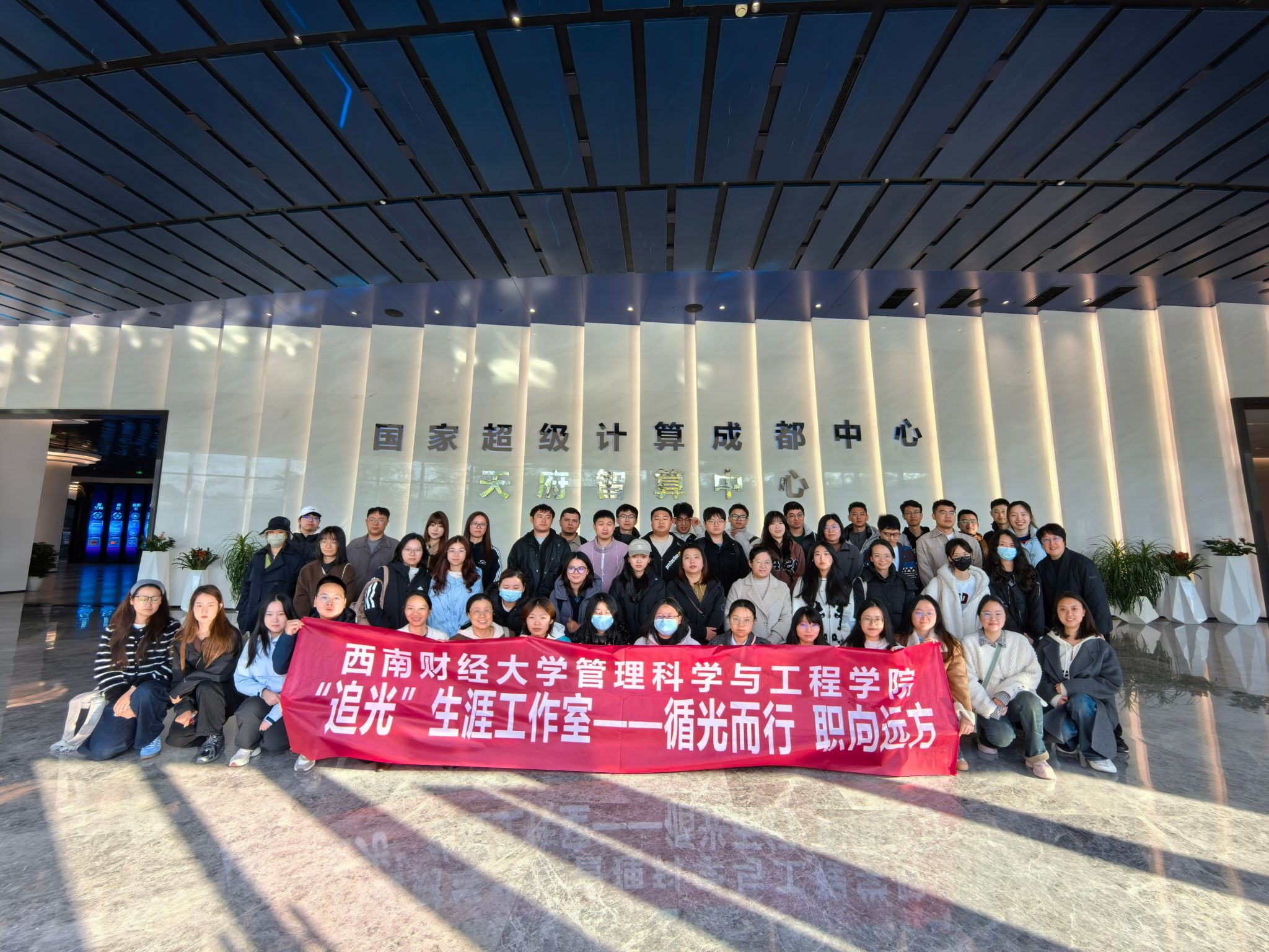 为深化产教融合,拓宽学生学术视野与职业视野,紧跟前沿科技步伐,2025年11月20日,304永利集团管理科学与工程学院工程管理硕士教育中心联合学院辅导员“追光”生涯工作室,组织项目管理专业师生赴国家超级计算成都中心开展校外实践教学活动。