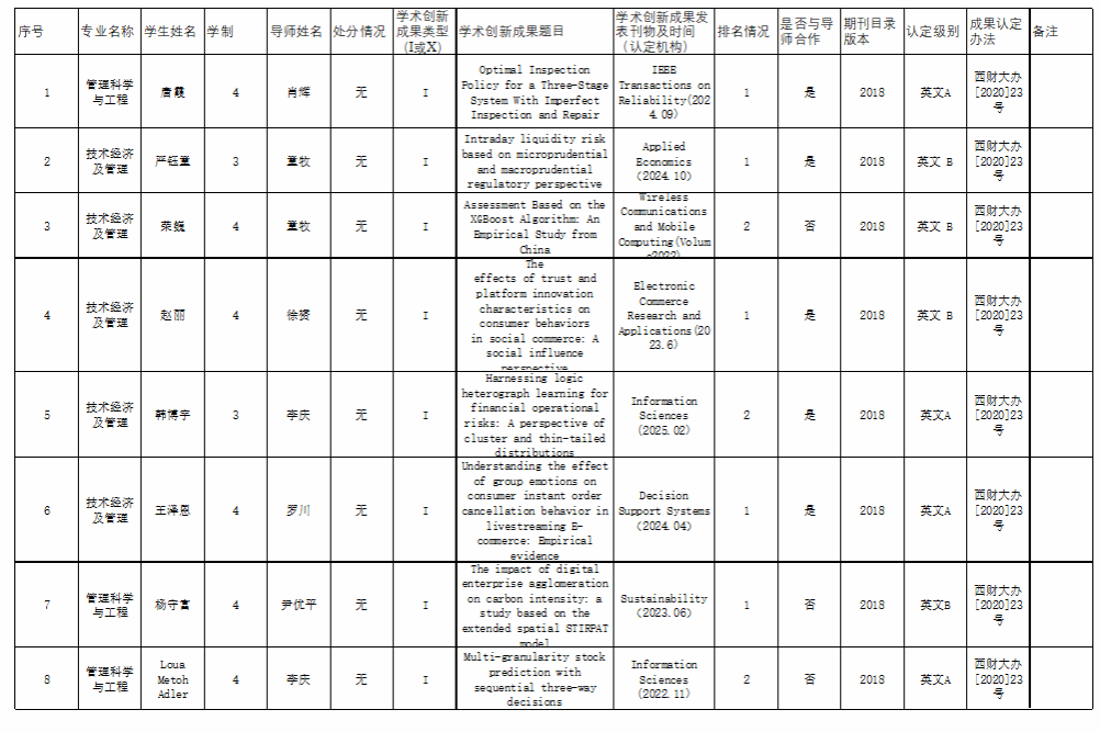 根据《304永利集团博士生申请学位学术创新成果认定办法》和我院相应专业的博士生培养方案要求及科研成果发表的相关规定,学院对相关博士生的学术创新成果及科研情况进行了审核,现将结果予以公示。公示期自2025年3月4日至3月24日(十五个工作日),在此期间若有异议,请及时反馈学院。