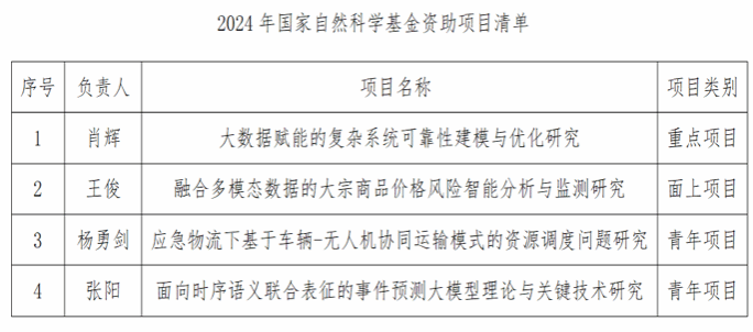 On August 23, the National Natural Science Foundation of China announced the review results of the National Natural Science Foundation's centralized application projects in 2024. The School of Management Science and Engineering of Southwestern University of Finance and Economics received four grants, including one National Natural Science Foundation key project, one general project, and two youth projects, with a total project funding of 2.61 million yuan.